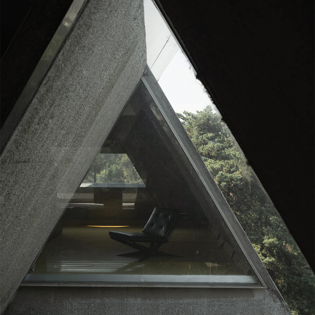 Inspired by the shape of the agave plant, the Gala Chair reflects Agustín Hernández’s deep interest in Mesoamerican pre-Hispanic architecture. This sculptural and futuristic-looking piece, designed by Hernández in 1997 for his own studio, exemplifies the brutalist and geometric style that aligns with his architectural projects.